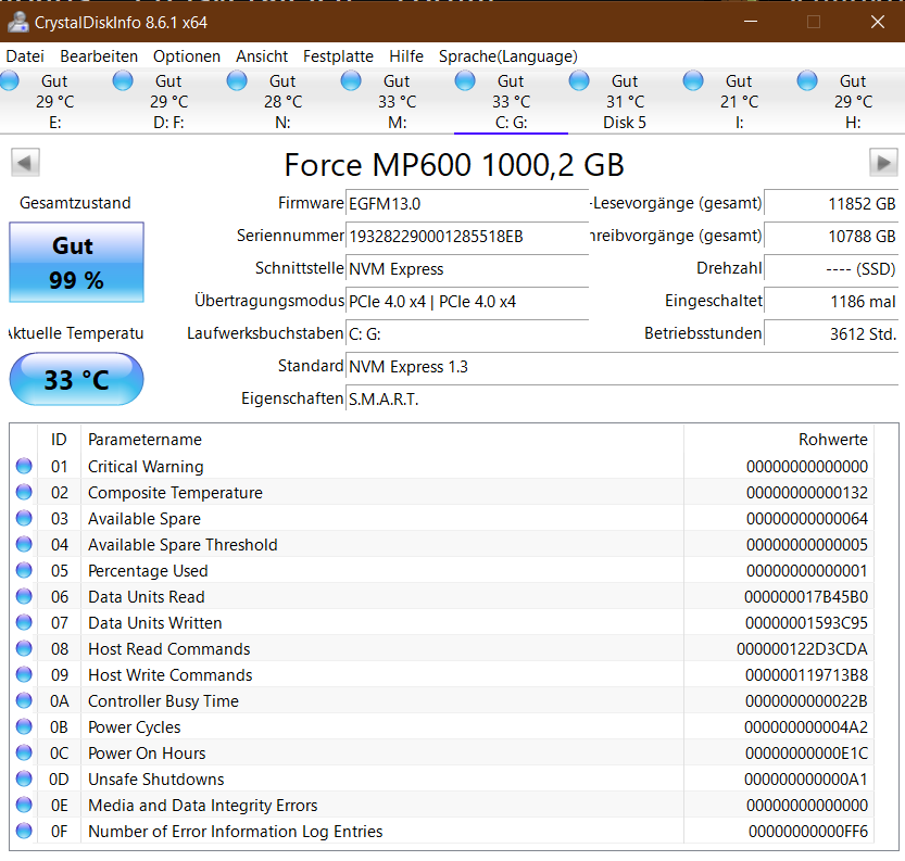 Ich kann nicht dauernd mein System mit Backup zurücksetzen. Es wird, wie geschrieben, für meine SSD jetzt schon nur noch 99% Gut bewertet. Alle anderen Platten liegen bei 100%. Obwohl die SSD die neueste von allen ist.