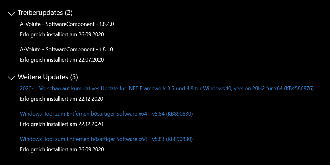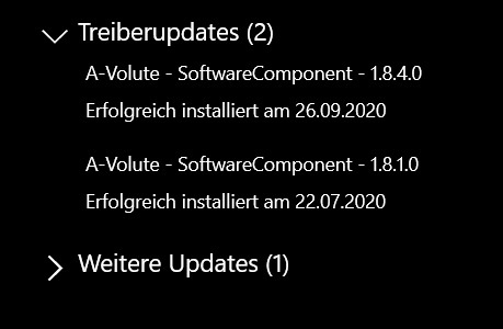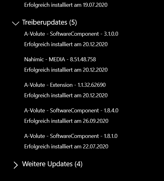 Einziges Treiberupdate von Windows war bis dahin, die beiden Updates von A-Volute (Nahimic), mit denen es aber keine Probleme gibt.