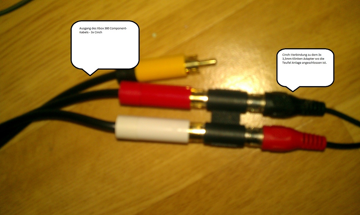 Ich habe alle Möglichkeiten ausprobiert (an dem Kabel sind insgesamt zwei Schalter, einer wie beim Original-Component-Kabel von MS zur Wahl zwischen SD- und HDTV und ein weiterer, um zwischen den einzelnen Kabelsträngen (einmal YUV und einmal RGB+S-VHS) zu wählen. Sobald ich aber HDMI- und das Joytech-Kabel gleichzeitig angeschlossen habe, passiert bildtechnisch gar nichts. Das heisst, ich kann offenbar nicht den Sound über das Komponentenkabel ausgeben, während ich das Bild per HDMI ansteuere. Ich weiss nicht, ob es an dem Kabel liegt, wenn andere hier schreiben, dass es bei ihnen oder bei ihren Freunden funktioniert, zumal es ja anscheinend auch mit dem Original-MS-Kabel funktionieren soll, sofern man die Stecker-Ummantelung entfernt. Womöglich geht es dann wohl nur mit dem MS-Kabel oder deren Adapter für 50€. Das wäre wirklich deprimierend!