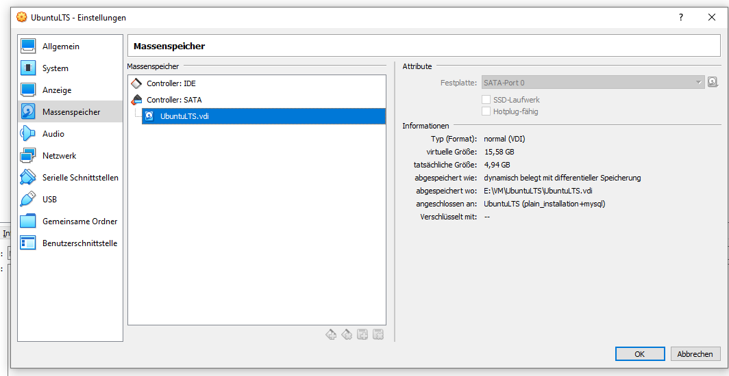 Ich habe VM mit einer Platte mit einer Ubuntu 22.04 LTS installation, wo sich die Disk dynamisch vergrößern soll. Ursprünglich 10GB groß, danach auf 15,58 GB in Virtulalbox über den "Manager für virtuelle Medien" erweitert.