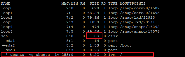 1. Warum sind die 15,58 nicht unter lsblk ersichtlich? Ich sehe hier nur die 10 GB vor Vergrößerung der dynamischen disk in VMWare.