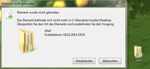 Das Element befindet sich nicht mehr in C:\Benutzer\mater\Desktop