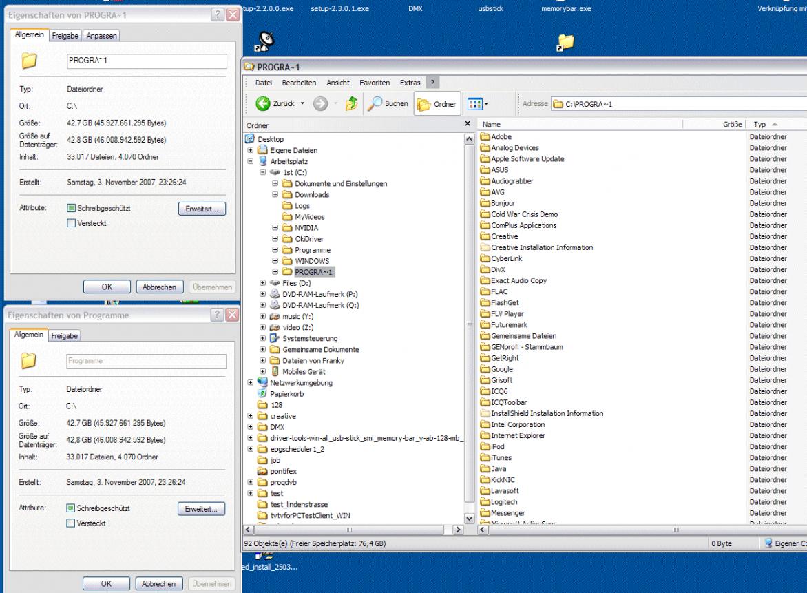 ich habe einmal dem ordner C:\Programme und dann noch einen ordner C:\PROGRA~1