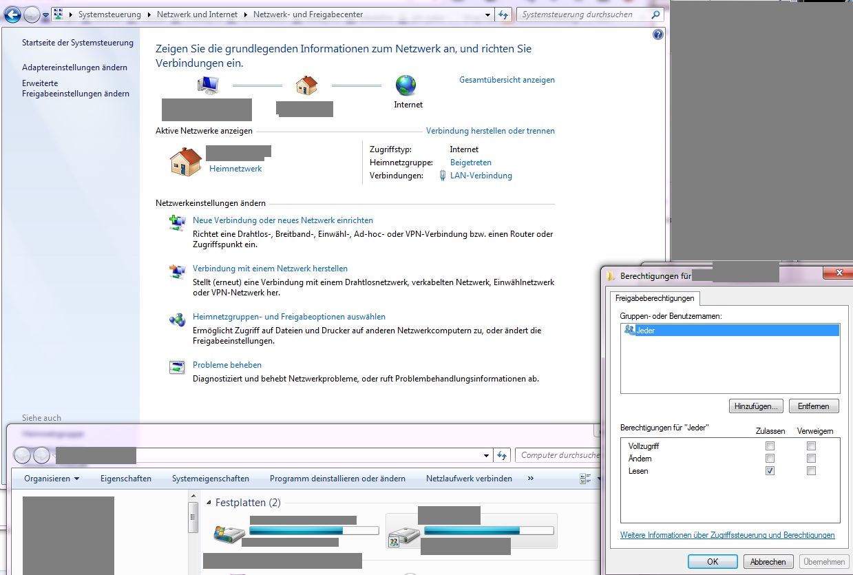 Zwei davon sind Windows 7 und einer IOS. Ich habe eine Festplatte freigegeben diese ist nun von einem Windows 7 und dem IOS Rechner erreichbar.