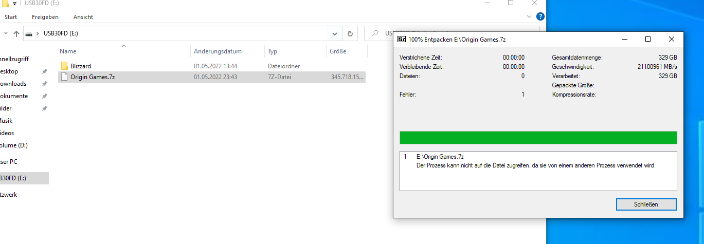 Es lief alles durch, der Ordner ist nun da wo er hin soll, aber nicht komprimiert und 7-Zip ist trotz anscheinend abgeschlossenen Vorgang nicht fertig.