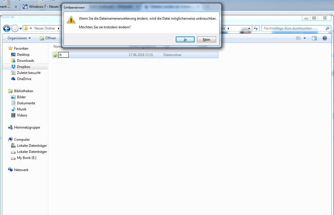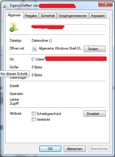 Im Anhang habe ich noch zwei Bilder hinzugefügt, in dem ihr die Eigenschaften dieses problematischen Ordners seht, die gar nicht einem Ordner entsprechen und die dritte zeigt die Fehlermeldung, wenn ich ihn erfolglos öffnen möchte und die vierte, wenn ich ihn umbenennen will. Die Umbenennung schlägt dann im Übrigen fehl, Element wurde nicht gefunden.