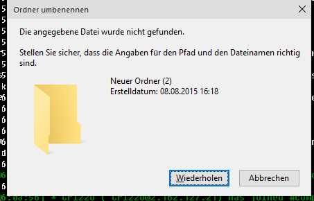 Leider habe ich seit ein paar Tagen ein komisches Phänomen: Ich kann keine Ordner umbennen, weder neu-erstellte noch bereits vorhandene. Ich bekomme immer folgende Fehlermeldungen: