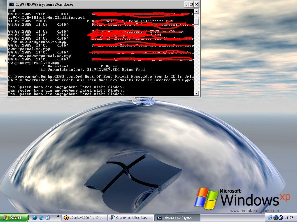 Ist dir vielleicht mal in den Sinn gekommen, das deinen Ganzen ordner nicht nur so heißen: "Ordner". Sonder Ordner.mpg Das musst du alles mitschreiben, wenn es ein ordner ist. Und das ist bei dir der Fall. Ich sehe aber eines. Du hast dein Edonkey immer noch offen. Schließ das.