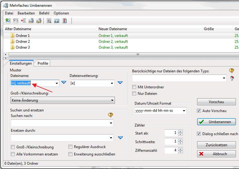 Ich würde gerne die Ordnernamen erweitern mit ", verkauft"