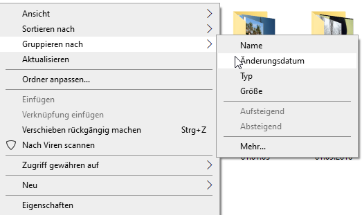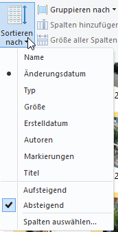 Ich meine nach Datum sortiert, nicht nach Änderungsdatum. Muss ich das etwa immer wieder neu machen? Ich dachte man kann den Explorer so einstellen dass er sich das generell merkt und nicht dass ich da immer wieder neu "für diesen Ordner merken" klicken muss. Stimmt schon was piepenkorn sagt. Aber geht das auch automatisch, wenn ich eine externe Festplatte anschließe? Weil da fange ich auch immer wieder von vorn an.