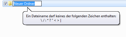 Syntax ist quasi die Regel wie Ordner benannt werden dürfen. Da gibt es eine Reihe von Zeichen, die nicht im Namen auftauchen dürfen, wie z.B. der :. Wenn man so einen Namen vergeben will, wird das von Windows abgelehnt.