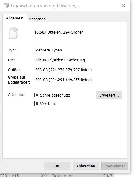 Dann nur zum test deinen Bilderordner mit dem explorer öffnen, [strg]+[a] aum alles zu markieren, dann [strg]+[c] um alles zum kopieren auszuwählen und dann da wo die sicherung hin soll [strg]+[v] um an der stelle alles einfügen zu lassen. klappt wenigstens das ohne das die kopierten Dateien/Ordner versteckt und system Attribute bekommen?