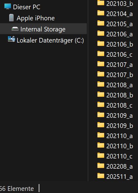 beim Sichern meiner Fotos vom iPhone auf meinen PC stelle ich fest, dass diverse** iPhone-Ordner am PC nicht gelistet werden. Somit habe ich keine Chance, die darin befindlichen Fotos auf den PC zu sichern. Die Fotos sind definitiv im iPhone vorhanden und ich nutze keine Cloud.
