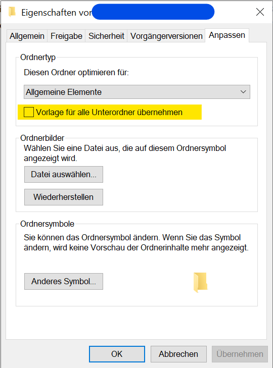 Also von Windows 7 kenne ich das so das man unter Eigenschaften -> Anpassen -> den Ordnertyp (Allgemeine Dokumente, Bilder etc.) aussuchen kann und dann "Vorlage für alle Unterordner übernehmen" drücken muss. Bei Windows 10 hatte ich das einige Zeit so bis versehentlich aufgrund anderer Problemchen mein Betriebssystem ein Riesenupdate vollzogen hat. Seitdem habe ich mit Windows einige Schwierigkeiten unter anderem dieses eben. Vorher ging es aber anscheinend macht Windows 10 neuerdings was will.