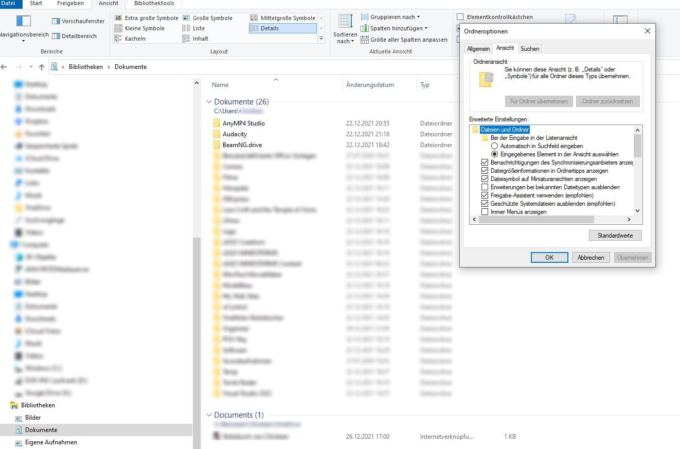 Manche Programme (z.B. Office) öffnen nicht die direkten Ordner, sondern gehen über die sog. Bibliotheken.