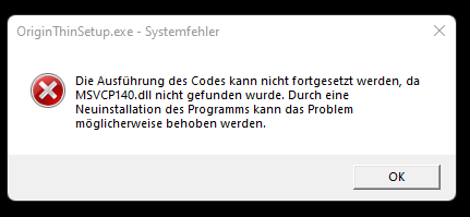 komme nicht weiter. Habe grad Windows 11 installiert und jetzt wollte ich Origin installieren, aber jedes mal erscheinen diese zwei Fehlermeldungen, sobald ich die Setup.exe starte.