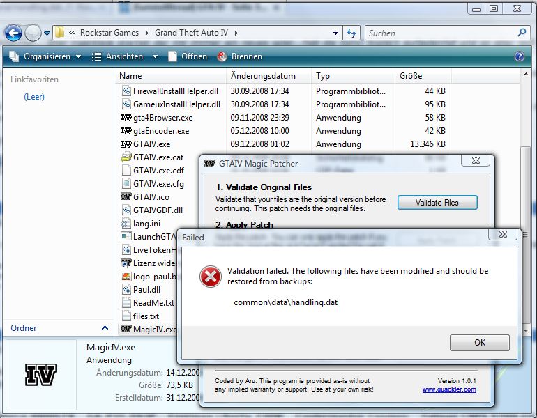 Ich hab ja das Game-habs sogar schon durchgezockt-habe heute von neuem anfangen wollen mit mods-hab den gtamagic installiert, der braucht aber nur mehr die originale handling.dat die ich aber durch eine mod-handling.dat überschrieben habe...!