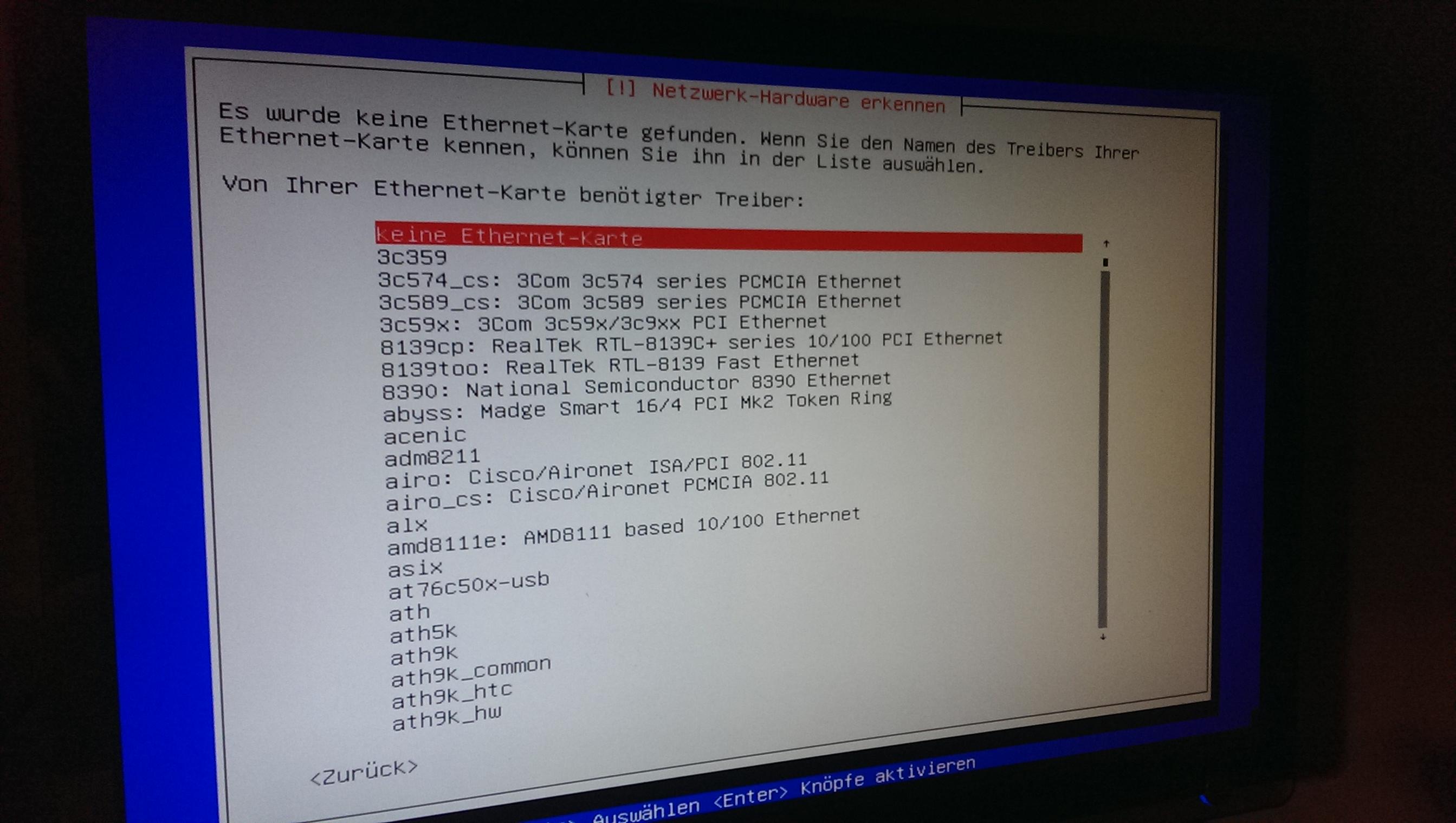 Es heisst es wurde keine netzwerkkarte erkannt nun muss ich manuel einen treiber auswählen. Wie kann ich herausfinden wie der heisst?