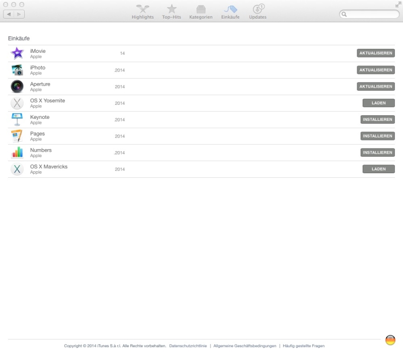 Aktuelles Betriebbsystem: Yosemite 10.10.1