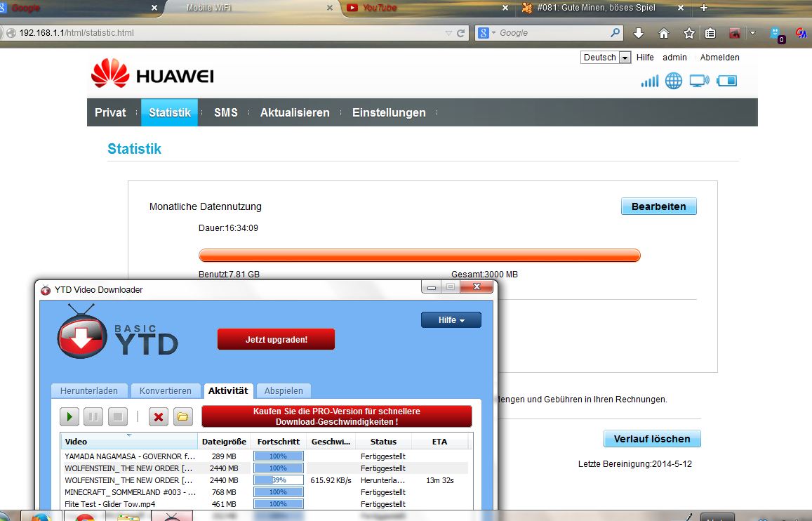 Dachte mir also heute, ich geh einfach mal ans Limit, um zu sehen wie man informiert wird ( SMS, etc. ) und Lade sinnlos zum Monatsende Youtube Videos runter.