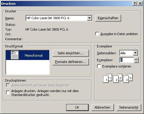 Outlook 2003 - Seitenanzahl beim Ausdrucken von "Memoformat" nicht einstellbar