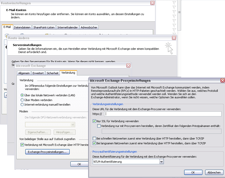 Wie kann ich im Outlook einstellen, dass ich ohne VPN verbindung auf die Exchangemails von einem Server zugreifen kann?