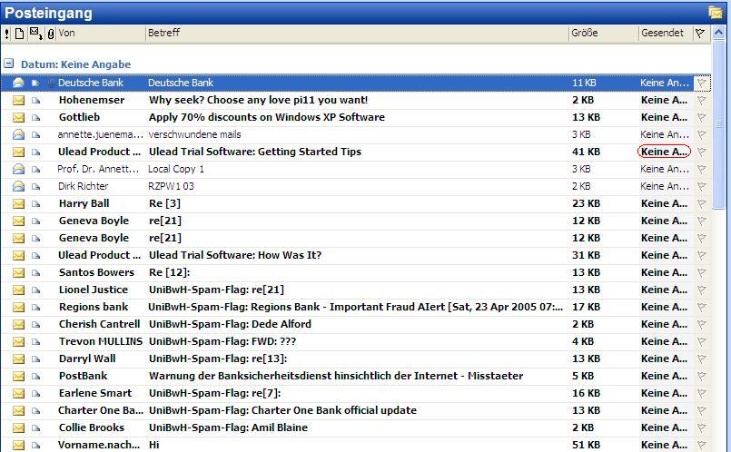 habe mir gestern mal meine Backup-Dateien von Outlook angeschaut. Dabei ist mir aufgefallen, dass etliche Emails im Ordner gesendet in der Listenansicht unter Datum "keine Angabe" steht. Als Beispiel siehe angehängtes Bild. Im Vorschaufenster von Outlook wird allerdings das korrekte Datum und die Uhrzeit angezeigt.
