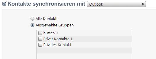 ->Wenn ich ''Ausgewählte Gruppen'' anklicke habe ich nur die Unterordner der Standard Kontaktordnergruppe zur Auswahl aber nicht die eigene angelegte Ordnergruppe ''Kontakte1''
