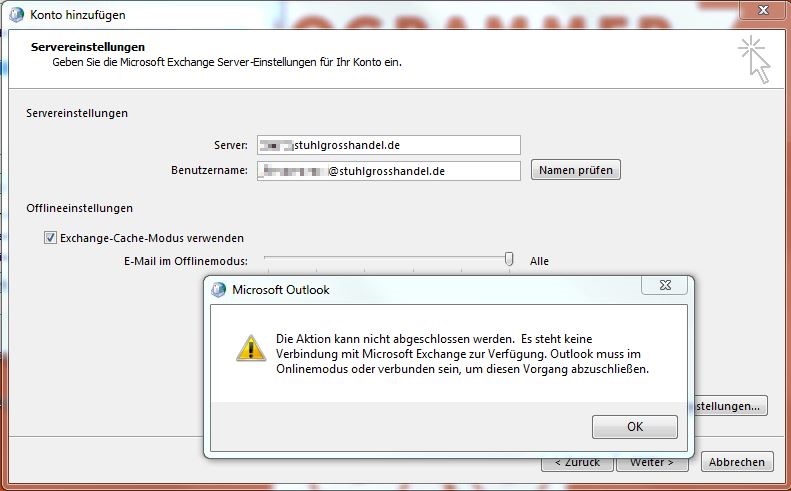 Ich bin so langsam echt am Verzweifeln. Das kann ja wohl nicht wahr sein, dass ich zu dumm bin, mein Exchange-Konto von der Firma mit meinem Outlook '13 zu Hause zu synchronisieren.