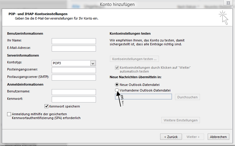 ich habe meinen Rechenr neu aufgesetzt und Office 2013 neu installierte. Meine pst Datei des Emailkontos habe ich gesichert und nun einfach die von Outlook neu erstellte "Outlook" pst durch meine ersetzt. Jetzt habe ich zwar im Outlook meine Email etc. und die Ordnerstruktur, jedoch ist das ganze mit keinem Konto verbunden.