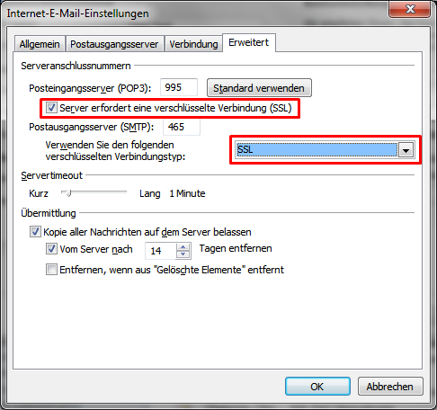 Die Maileinstellungen wurden getestet und sind korrekt.