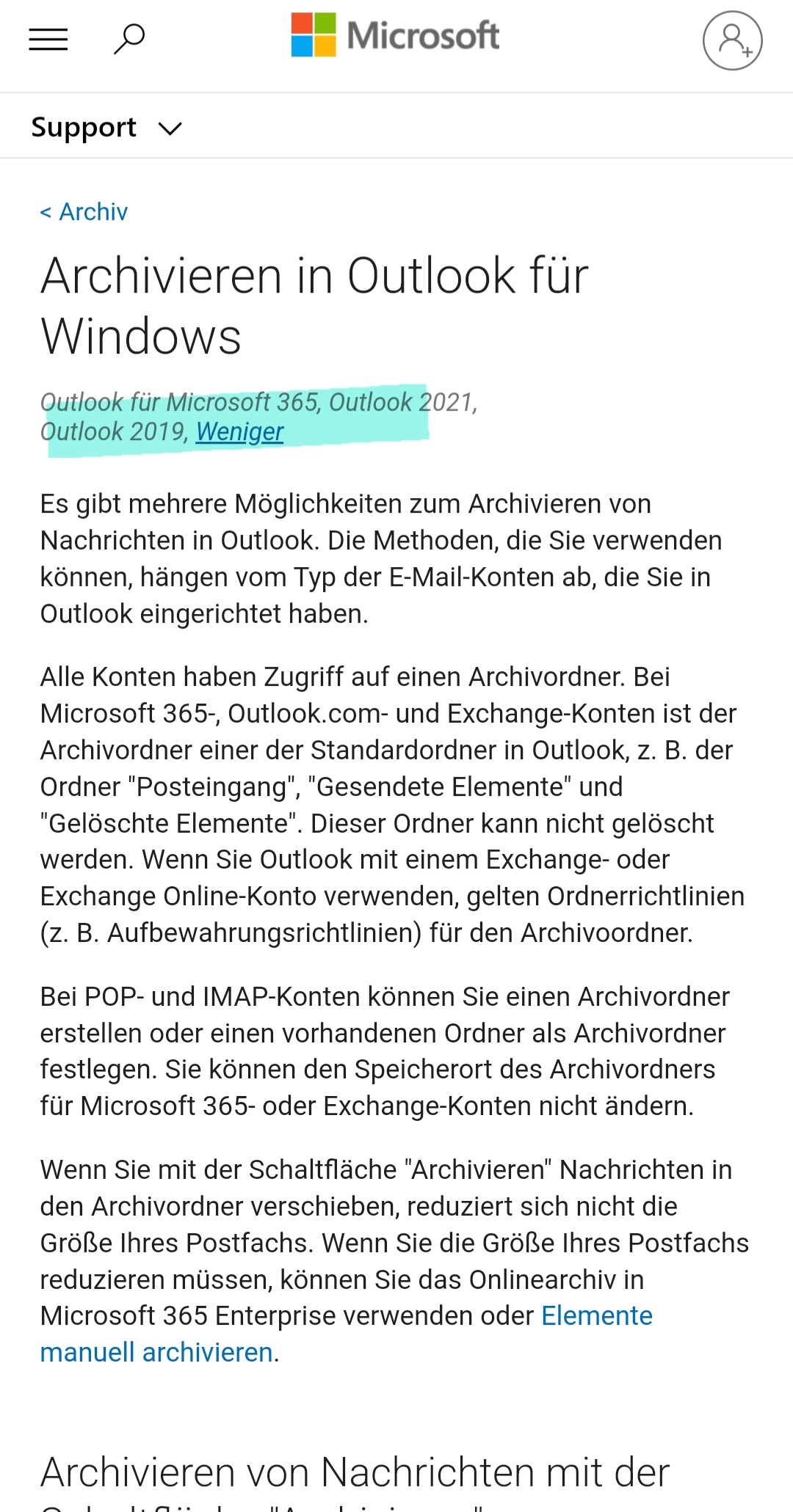 Ich kann für das IMAP-Konto einen Archivordner bestimmen, und den Archivieren-Button nutzen (Firmenkonto ist natürlich Exchange und im Outlook 2019 auch eingebunden, hat es damit was zu tun? Unter dem Exchange-Konto gehts aber wiederum nicht).