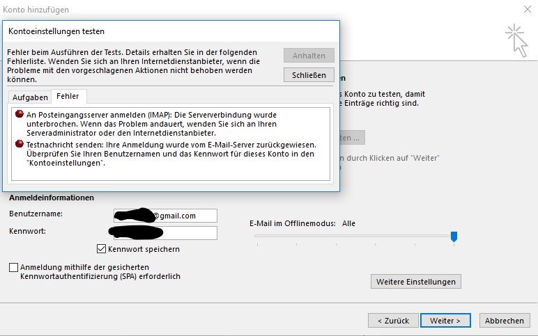 Ich habe das Email Konto komplett gelöscht und neu hinzugefügt, aber für mich sieht es so aus, als würde Google die IMAP Verbindung blockieren ?!?!?!