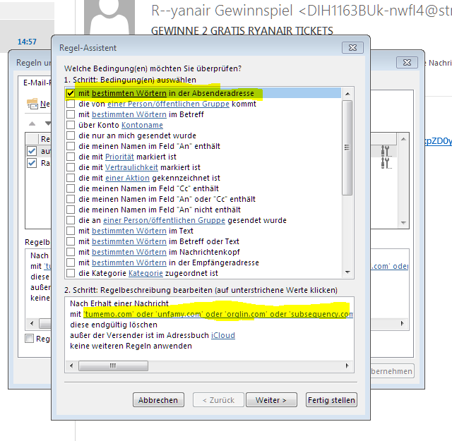 1. ich habe damit angefangen für bestimmte Absenderadressen Regeln zu erstellen.