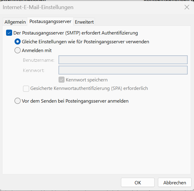 auf den Screenshots sind die entsprechenden Einstellungen mit denen der Versand, aber kein Empfang möglich ist...