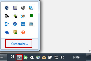 Über "Customize" (hier Englisches Windows 7), kann man die Icons konfigurieren.