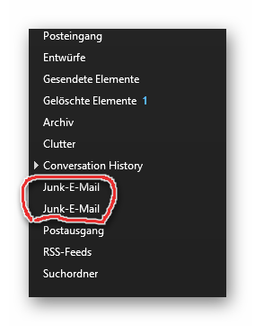 kann mir jemand sagen warum ich bei Outlook 2019 mit einem Microsoft Konto (bei meinem anderen ist das nicht der Fall) den Ordner Junk emal 2x mal habe? Wenn ich einen davon anklicke, flimmert der Schriftzug und Office hängt sich komplett auf.