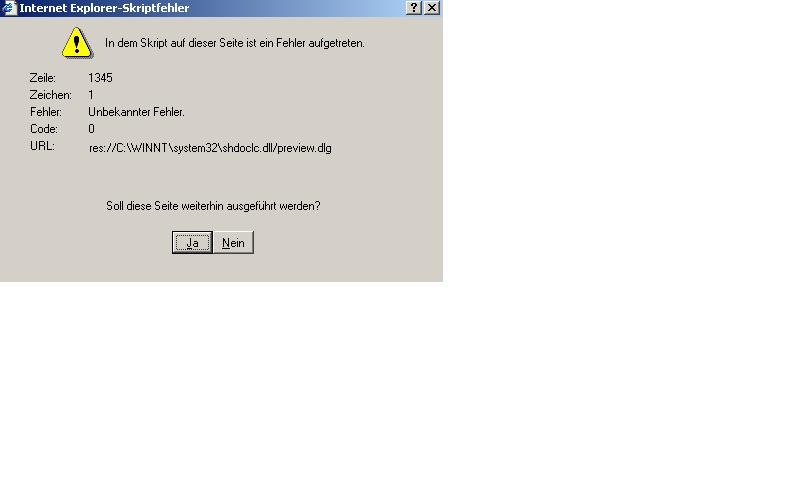 Seit kurzem kommt der im Anhang enthaltene Fehler wenn ich im OUTLOOK EXPRESS (integriert in Win 2000) eine Mail drucke. Das Druckfenster wird egal ob mit JA oder NEIN bestätigt wird NICHT geöffnet. Somit kann ich garnix drucken.