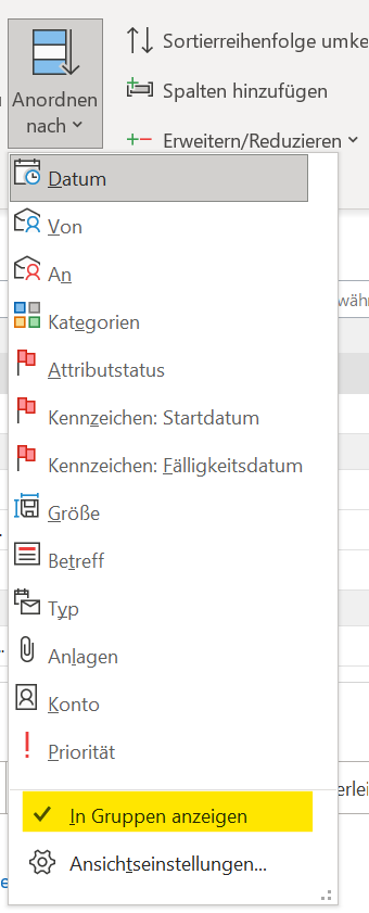 Wie bekomme ich bei Eingang Emails "heute , letzte woche Monat ..." weg.