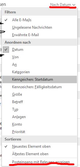 Wie ich mein Outlook personalisieren habe ich festgestellt, dass mich diese Trennung im Posteingang mit "Relevanz" und "Sonstige" sehr nervt....