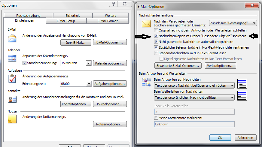 Nun zur Frage: Ich benutze noch Outlook 2007. Wenn ich eine E-mail sende, warum erscheint die gesendete Mail (tatsächlich gesendet und beim Adressaten auch angekommen) nicht in meinem Ordener "gesendete Objekte"?