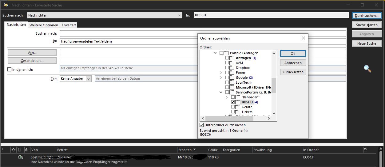 Wenn ich in Outllook nach einer Mail suche, dann durchsucht er ja Standardmäßig das ganze Postfach.