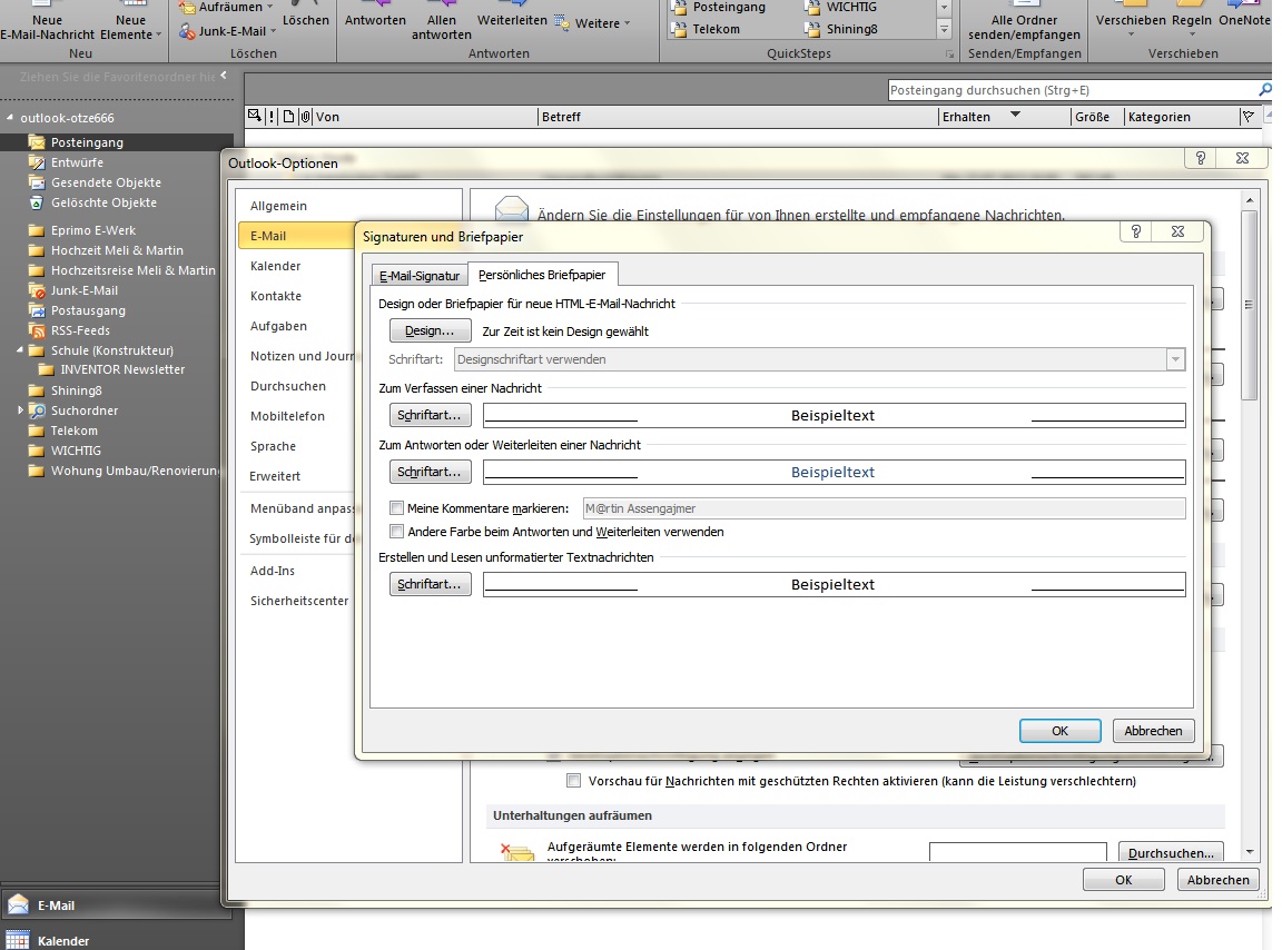 ja aber ich will beim Antworten ein anderes Farbschema haben vrstehst du? da bei optionen - e mail - Signaturen und Briefpapier kann ich nichtt einstellen dass ich mein Farbschema wie in word oder excel automatisch übernommen einstellen kann