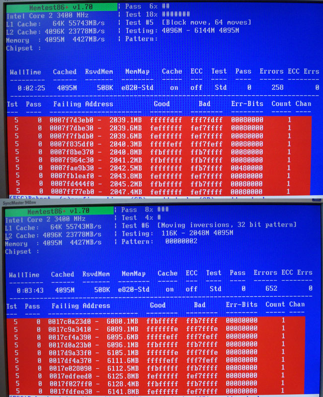Ich habe dann Memory Remap Enabled. Jetzt lässt sich das System zwar booten, aber nur mit Standard FSB von 266. Sobald ich den FSB über 300 hebe bekomme ich entweder den Fehler von Windows, oder wenn ich Memtest starte Fehlermeldungen.