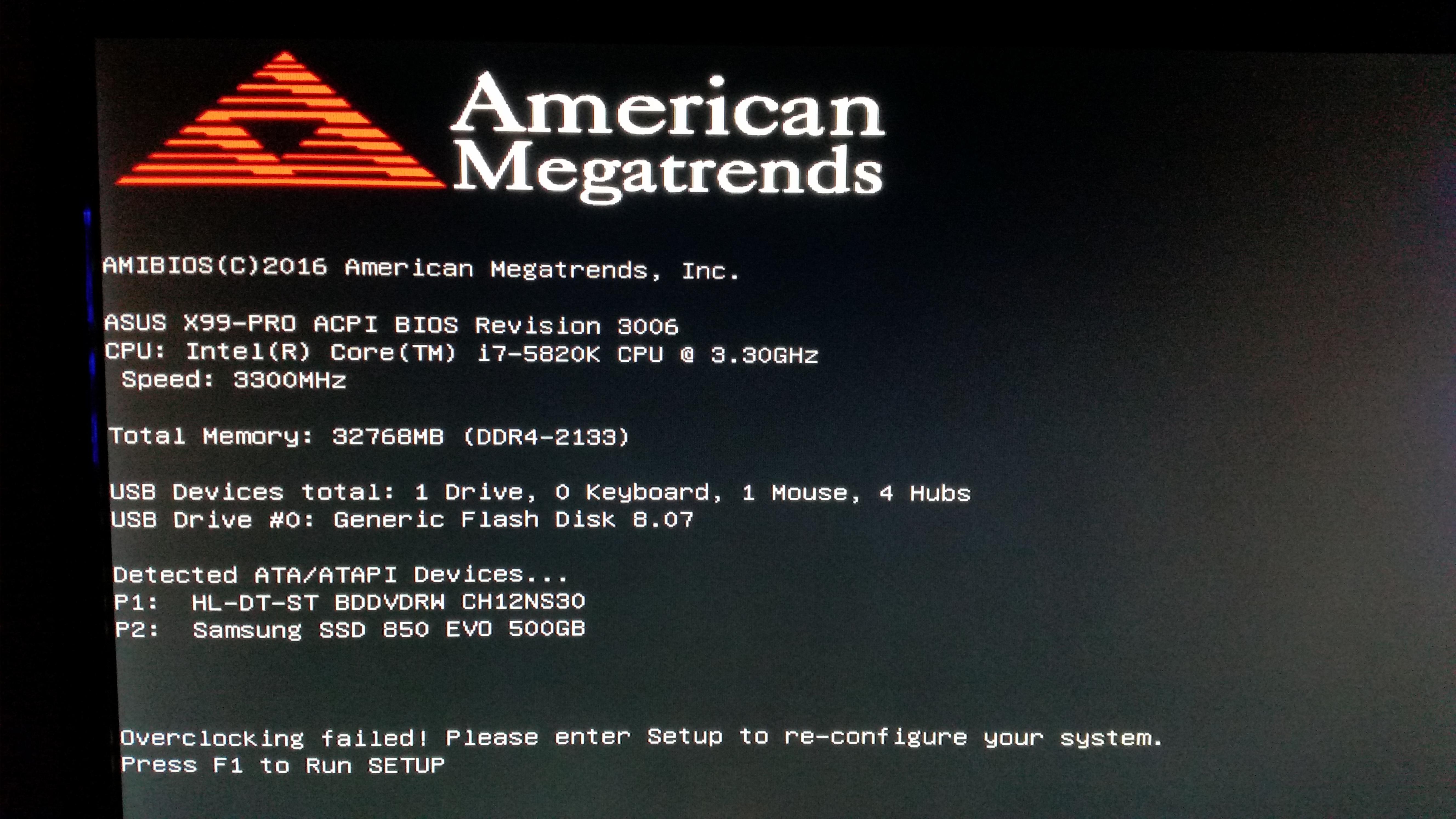 Nachdem er hochfährt bekomme ich die Fehlermeldung : " Overclocking failed ! Please enter Setup to re-configure your System. Press F1 to RUN SETUP"