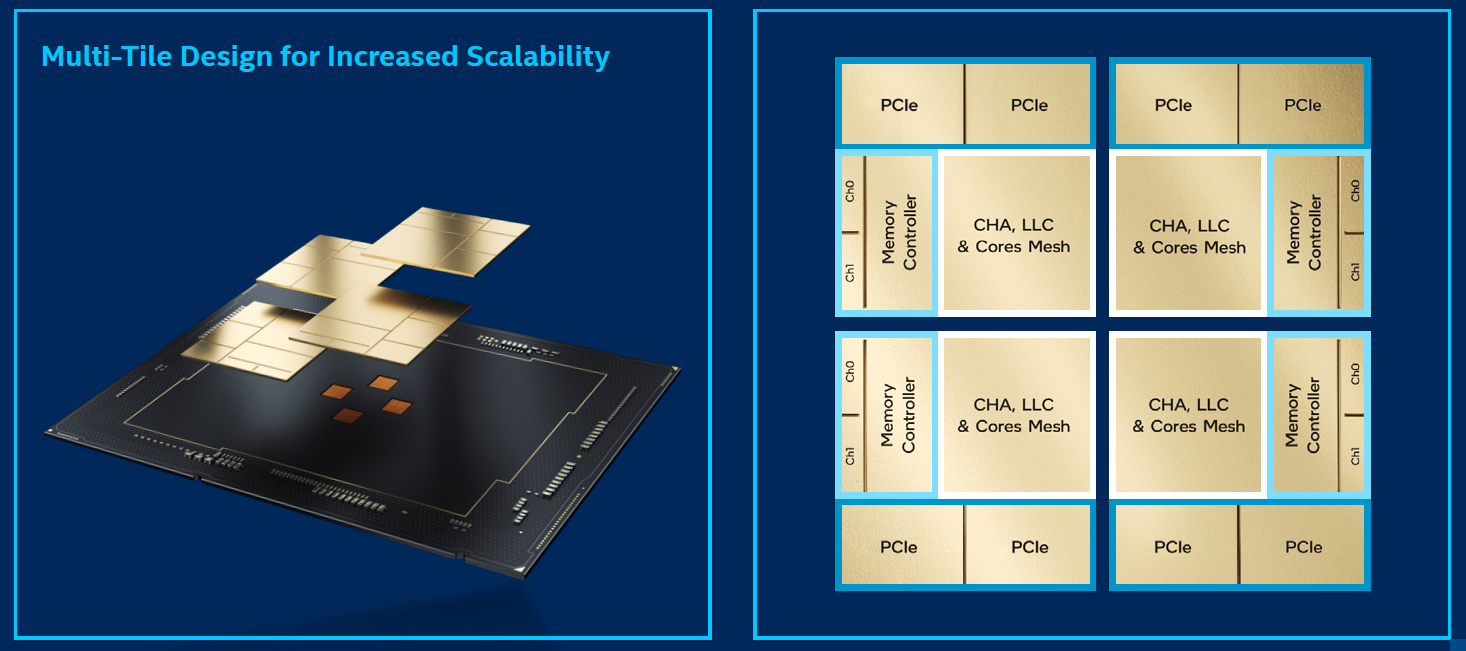wie man in der grafik sehen kann, hat jedes tile seinen eigenen dual-channel controller. läuft dein spiel nur auf einem tile können zwar die threads untereinander schnell kommunizieren, aber haben extra-latenzen wenn sie speicher von den anderen controllern brauchen. läuft das spiel auf alle tiles aufgeteilt, haben zwar die threads jeweils schnelleren zugriff auf den jeweiligen speicherkontroller, aber es gibt extra-latenz bei der kommunikation untereinander. und die will man eigentlich vermeiden (hier gibts nette graphen), was dich wieder auf ein dual-channel interface beschränkt.