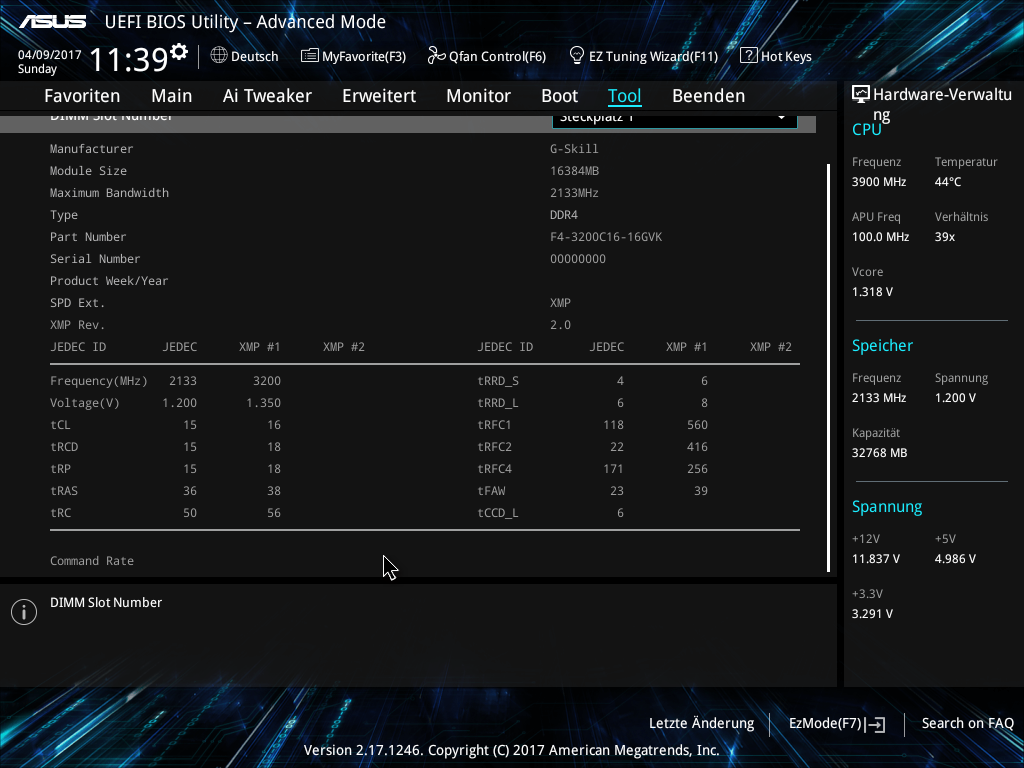 Ich hab mal nen Screenshot über das Bios gemacht wie das Bios in der Version 0515 den Speicher ausliest.