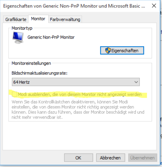 Da Windows in einer VM läuft, habe ich die entsprechenden Optionen der GPU Hersteller (AMD, NVIDIA, Intel, ...) nicht zur Verfügung.