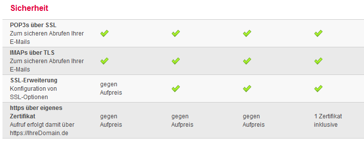 Mein Hoster ist All-Inkl.com, aber von dem habe ich bisher viel gutes gehört. Das mit dem kostenlosen SSL-Zertifikat scheint lediglich im günstigsten Tarif nicht enthalten zu sein (siehe Bild oder --> Tarifvergleich)