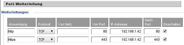 Funktioniert soweit auch alles. Bis auf die Port-Weiterleitung im internen Netzwerk.